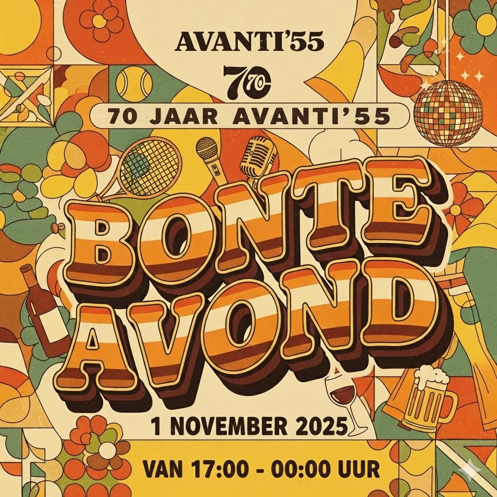 Op zaterdag 1 november organiseren we een speciale Avanti Bonte Avond, precies 70 jaar nadat notaris Schreurs de Stichting Tennispark Valkenburg oprichtte – de stichting die tot op de dag van vandaag ons tennispark beheert.